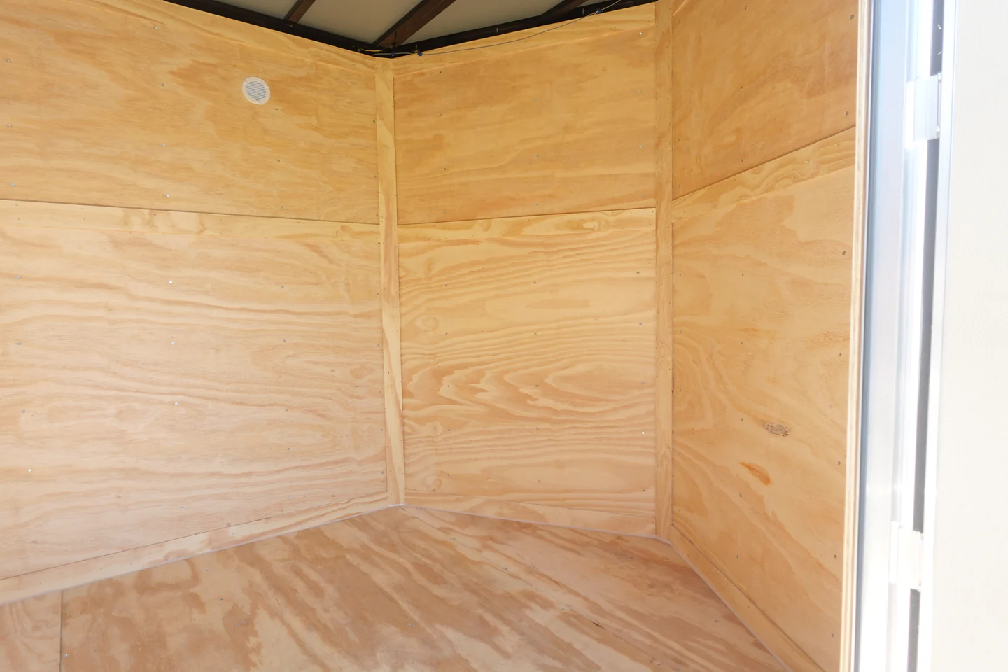 - Aerodynamic V-Nose Front – V-nose design reduces wind resistance while maximizing usable storage space in the enclosed section.