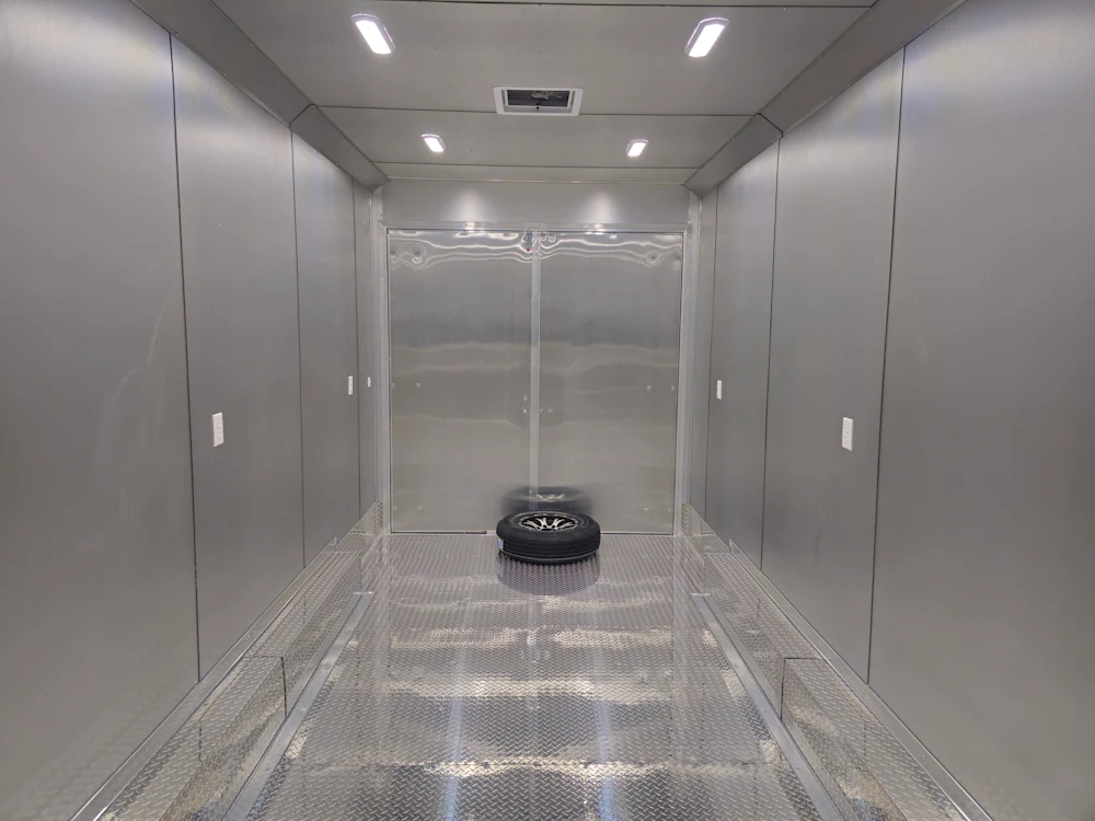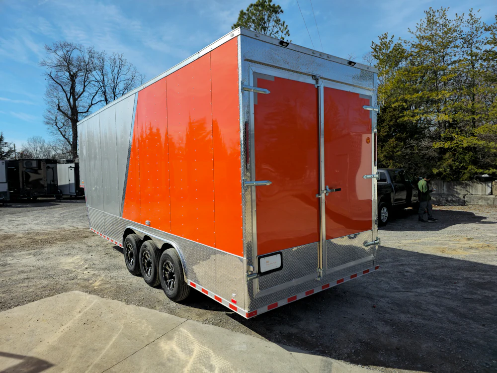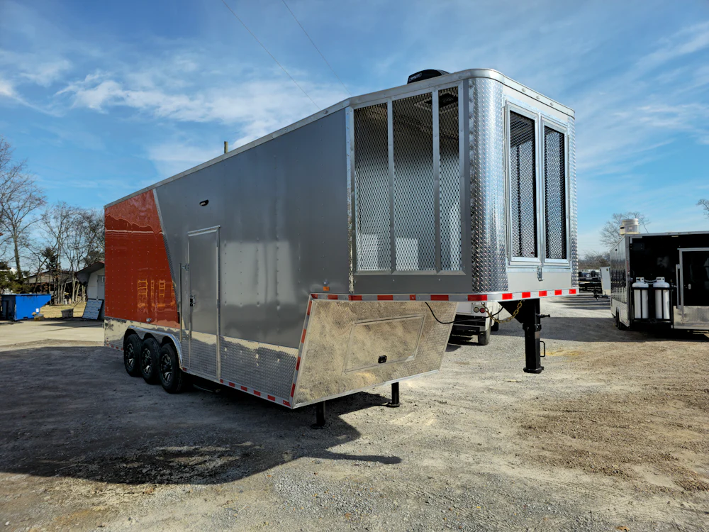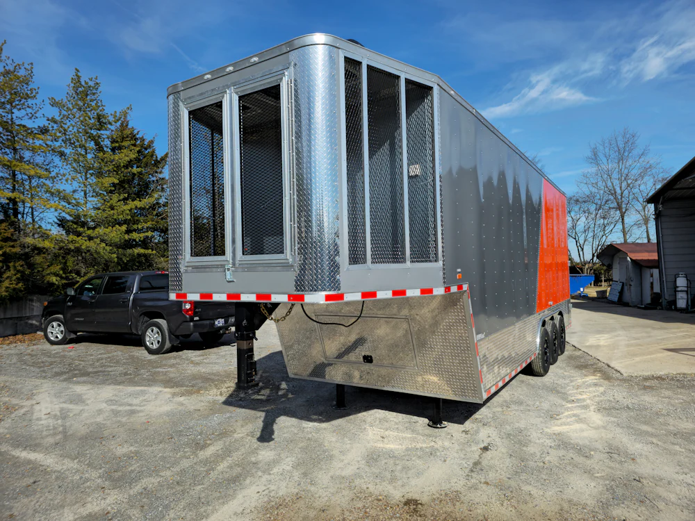 8.5′ X 30′ Custom Silver and Orange Gooseneck Enclosed Trailer