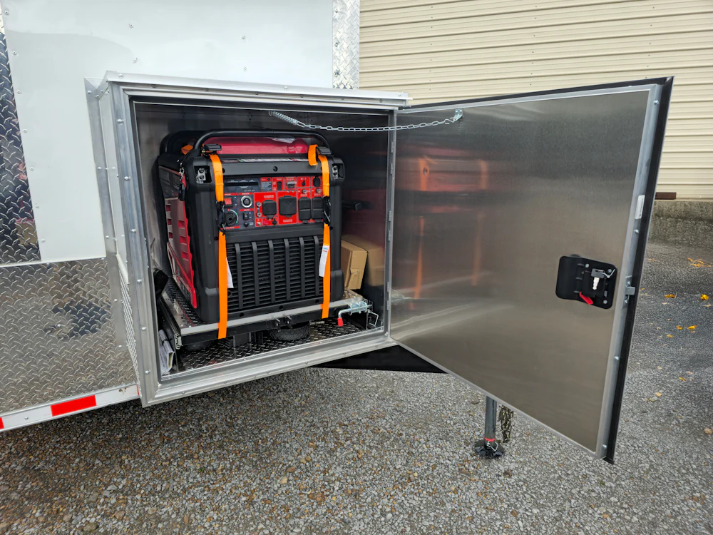 Generator box with slide tray for a seamless power source.