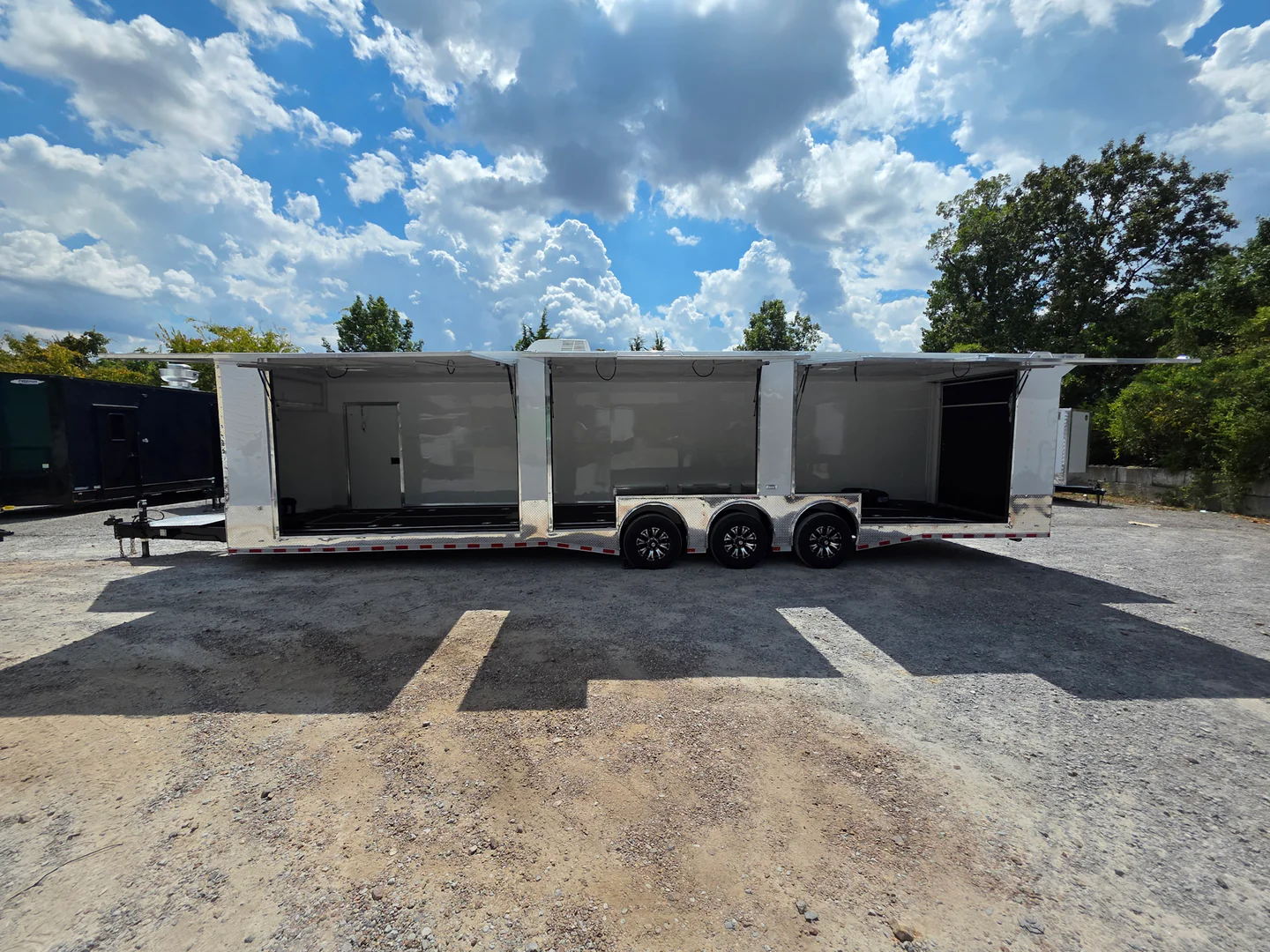 This 8.5′ x 36′ custom car hauler is built for serious hauling, storage, and performance with triple 7,000 lb spread axles and a spacious 7.5′ interior height. Packed with premium features like a rear spoiler, recessed 5,500 lb winch, extensive lighting, it’s designed to handle any job in comfort and style. Durable finishes, insulated walls, and smart storage solutions make this trailer a professional-grade choice for transporting vehicles or equipment with ease.