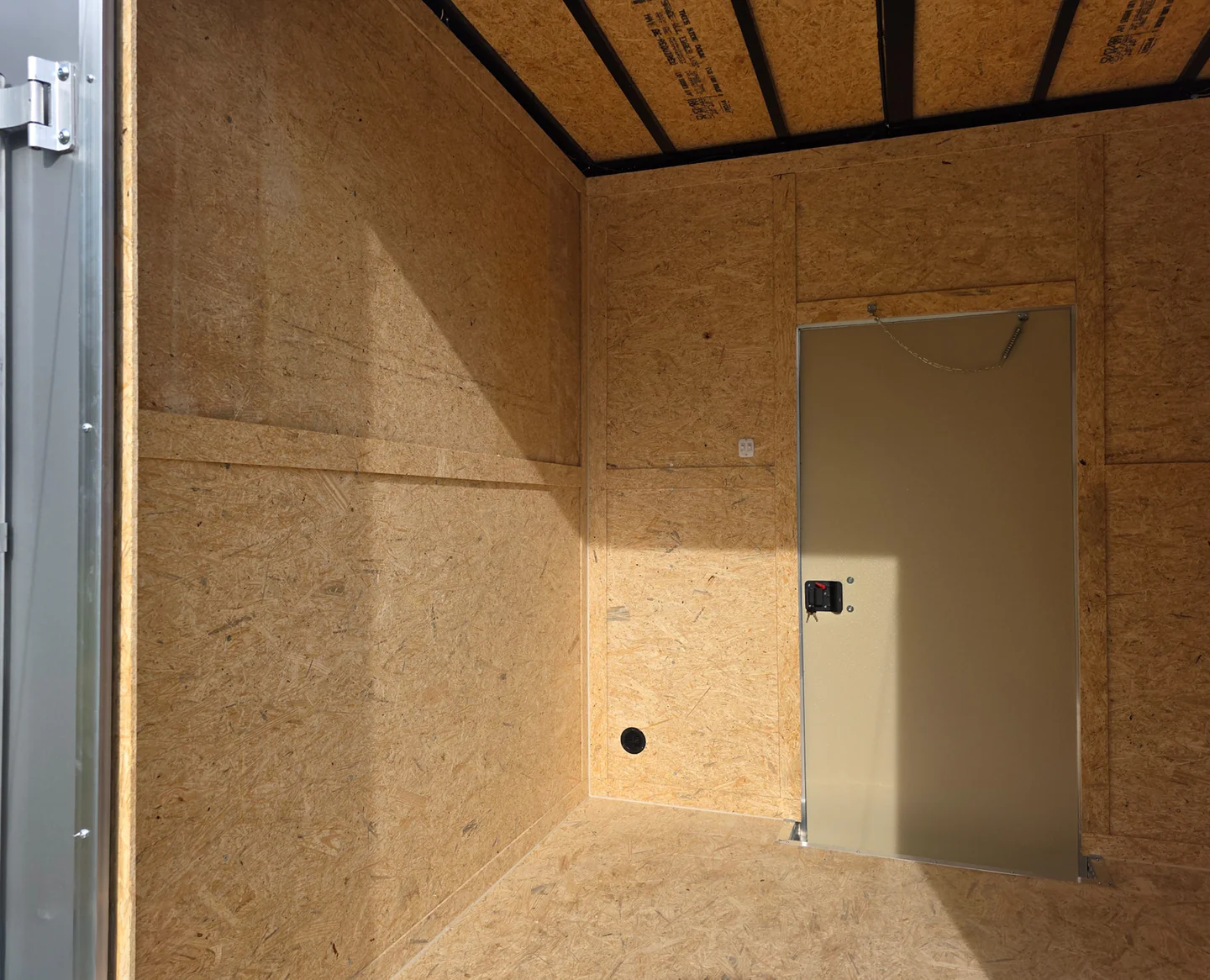• Driver-Side Door: 36″ wide RV-style man door with lockable latch and weather seal