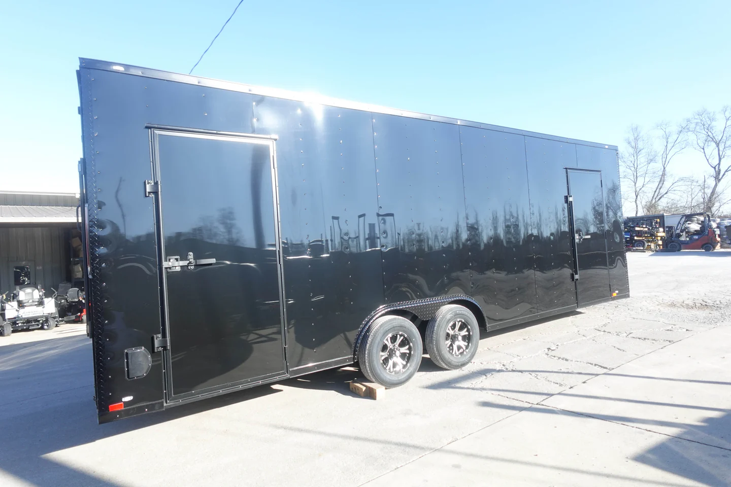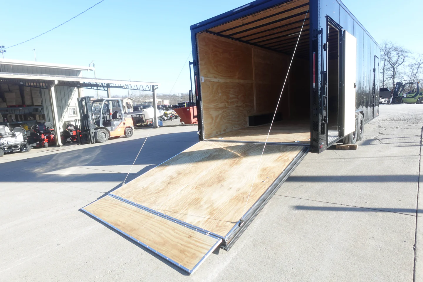 - Enhanced Accessibility: Two 36″ man doors with RV flush locks and bar locks, plus a rear spring-assisted ramp for effortless loading and unloading.